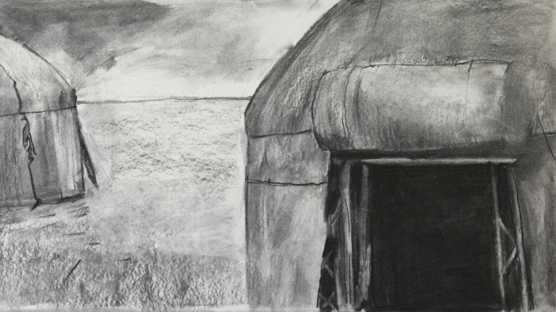 Drawings for the animation film, charcoal on paper, 2017 - 2020